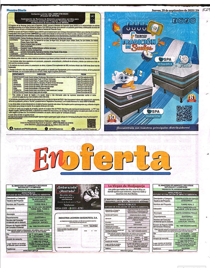 EIA-F-0152-2025 | PLAZA AZAHARES | 22 CA. 7-40 Z.4 MIXCO CONDADO EL NARANJO, MUNICIPIO DE MIXCO, DEPARTAMENTO DE GUATEMALA | 2025-09-24 | 2025-10-22 |