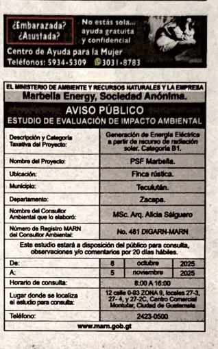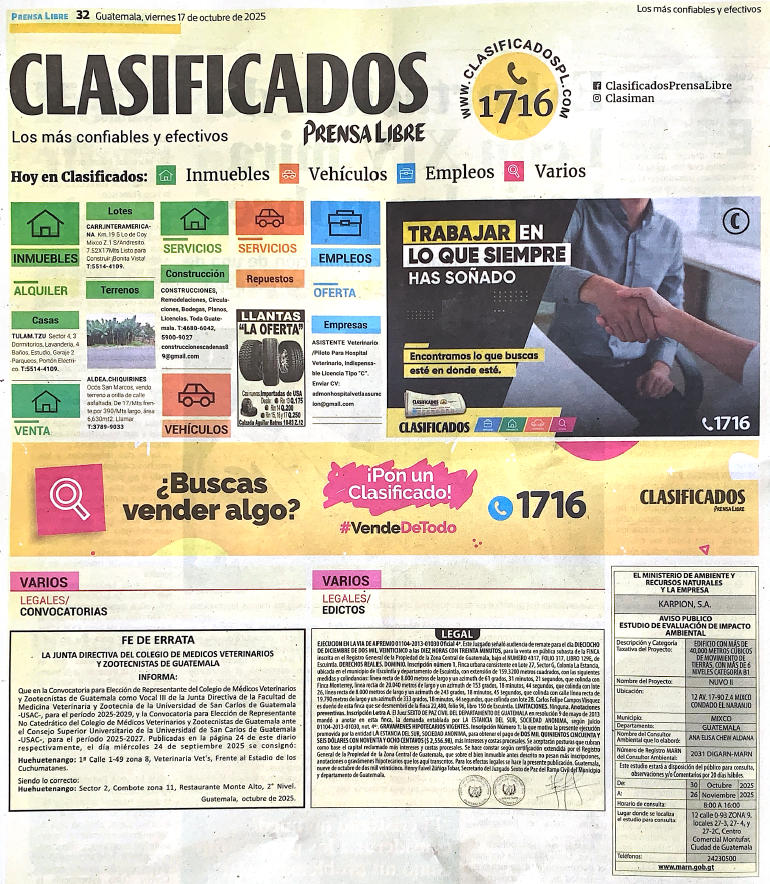 EIA-F-0161-2025 | BRILEA DEL CARMEN | 02 AVENIDA 30-01 COLONIA EL CARMEN ZONA 12 CIUDAD GUATEMALA, MUNICIPIO DE GUATEMALA, DEPARTAMENTO DE GUATEMALA | 2025-10-08 | 2025-11-05 |